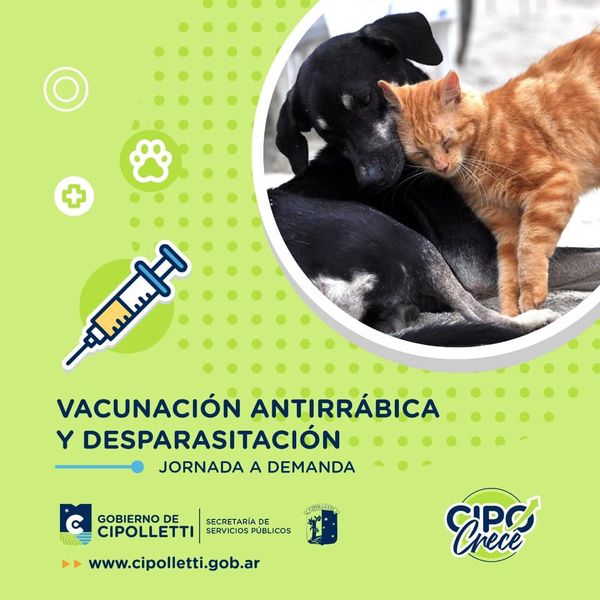 Este Sábado 26 de Marzo , se realizará Vacunación Antirrábica y Desparasitación de Perros y Gatos, para los Barrio Costa Sur, Labraña y Barrios cercanos, será en el Centro de Promoción Comunitaria de Costa Sur, sin turno previo y en el horario de 10 a 14 horas.